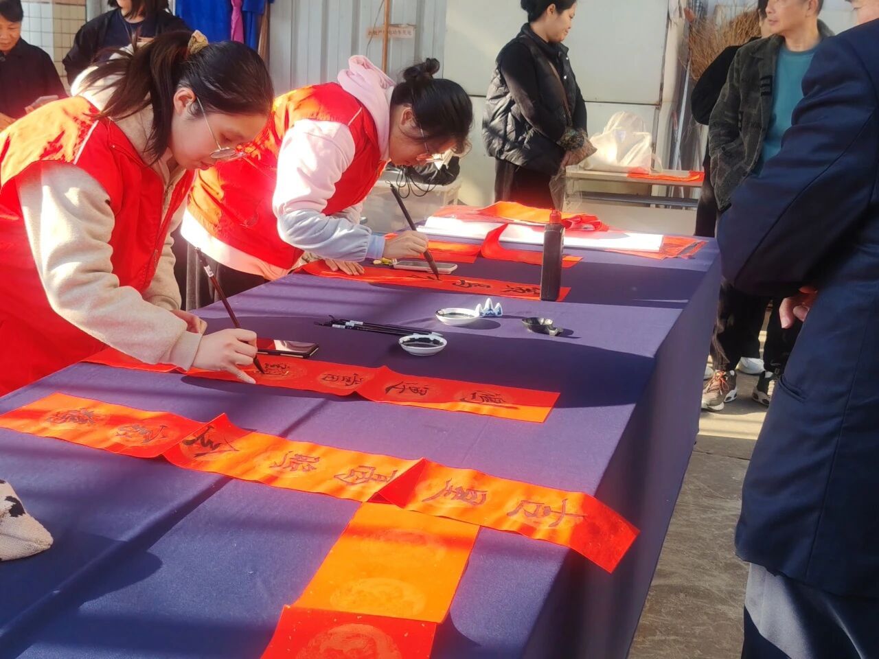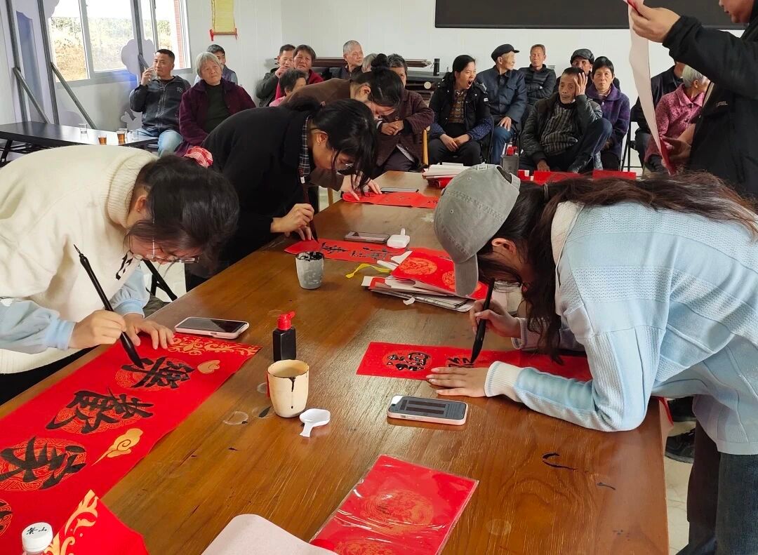 师生携手顶坛村驻村第一书记、致尚社工湖西站及顶坛村委会,走进作为闽台文化交融地、藏有全国重点文物保护单位蓝廷珍纪念馆的漳浦县湖西镇顶坛村,开展“妙笔迎新春,泼墨赠祝福”义写春联活动,将一幅幅寓意吉祥的春联与福字送到古村群众手中,用实际行动传递关怀,让乡亲们在冬日中感受到新春的温暖与社会的情谊。