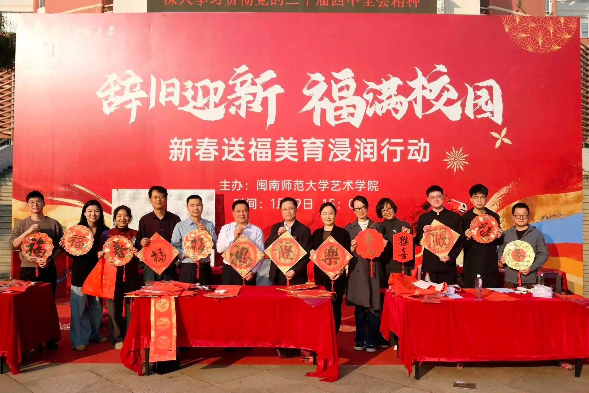 立足专业特色,深入探寻春节的文化内涵与时代价值,推动美育实践与文化传承相融合,开展“辞旧迎新”新春送福寒假社会实践活动,走进校园、社区与乡村,以艺术点亮新春,以文化温暖人心。