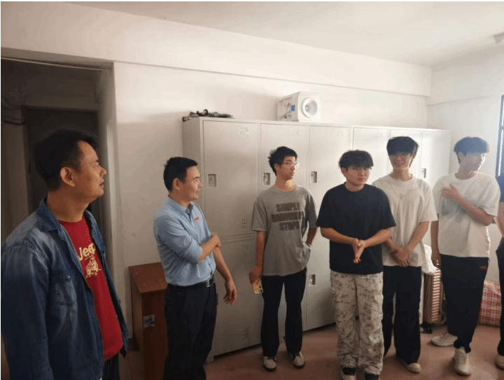 领导老师及班主任深入学生宿舍,与同学们畅谈,细致询问学业进展、生活适应情况及实际需求。从床铺设施、水电供应到卫生环境,逐一察看细节,确保同学们拥有安全舒适的居住条件。