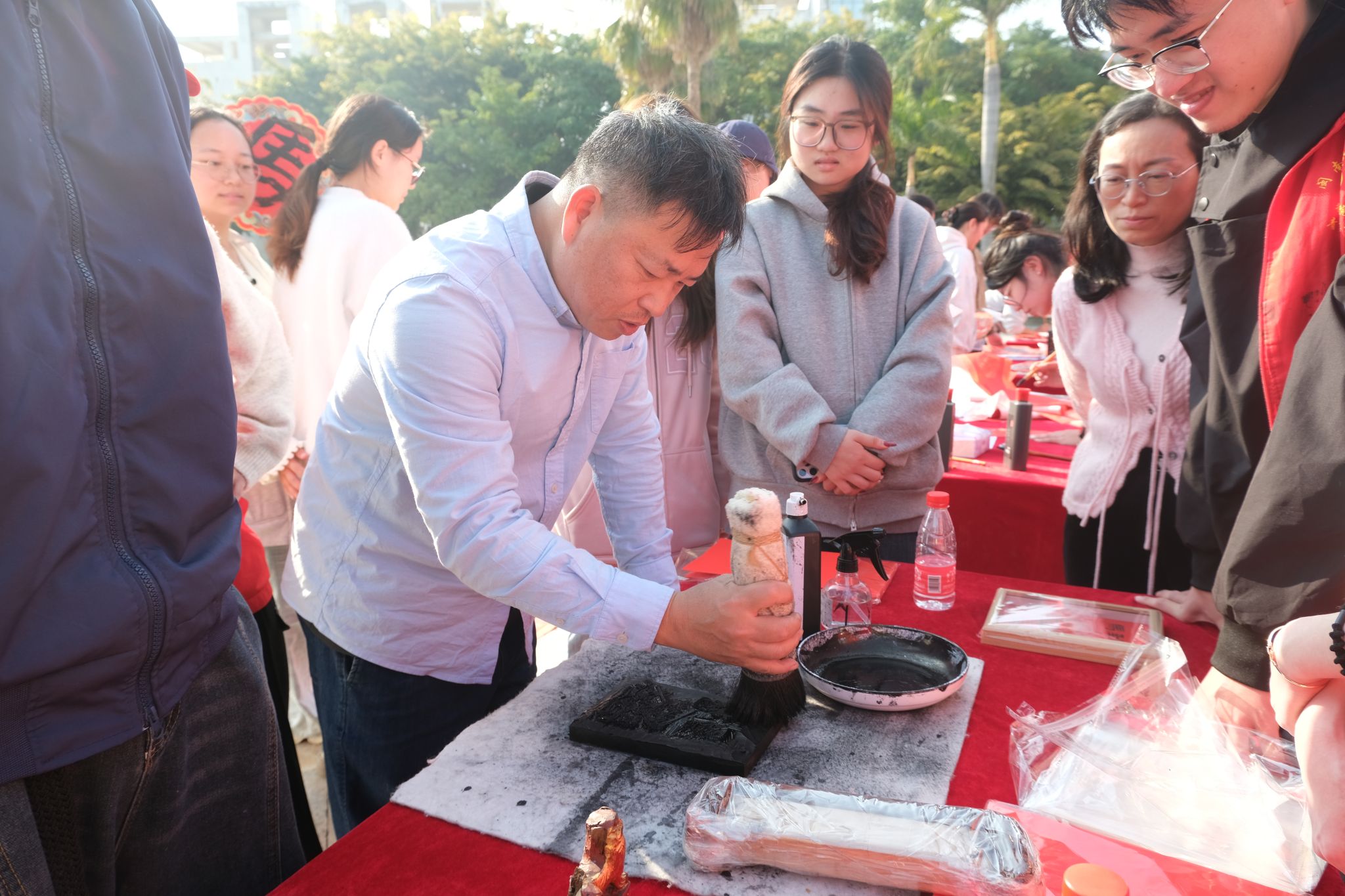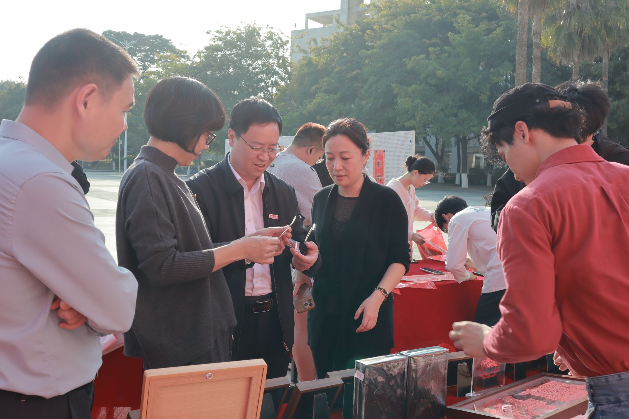写福字与春联区人气尤为高涨。众多师生共同组成“送福团”,展纸挥毫,携手以传统笔墨传递新春祝愿,为校园增添了浓厚的节日氛围。一副副笔力浑厚的春联、一个个饱满圆润的福字,寄托着对学业、工作和生活的真挚祝福。学校师生欣然前来,手捧墨迹未干的春联与福字,笑容温暖,让融融情谊流淌于字里行间。